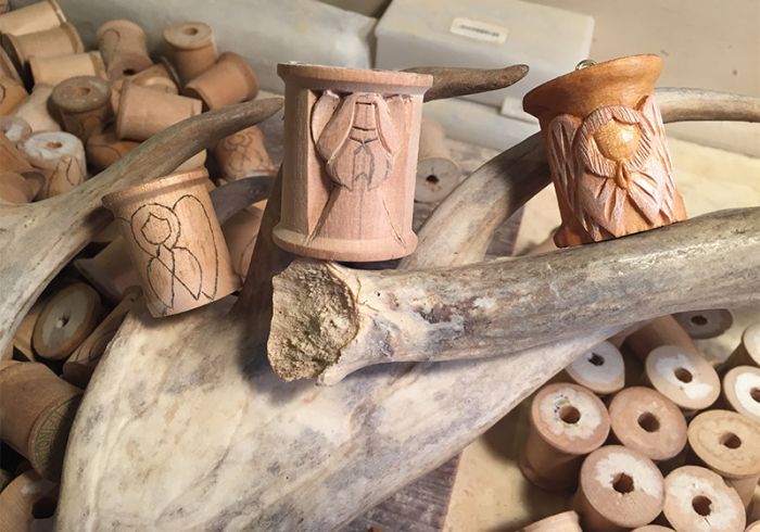 Thank you very much for taking time to view my website and what I do with antique wooden thread spool and antler carving. I hope you enjoy these handmade Christmas ornaments that are sure to make a impact while on a budget. Each spool carving and antler carving is done by me and by hand.